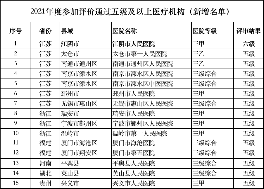 時間:2022-07-26 近日,國家衛(wèi)生健康委醫(yī)院管理研究所發(fā)布《關(guān)于2021年度電子病歷系統(tǒng)應(yīng)用水平分級評價高級別醫(yī)療機構(gòu)結(jié)果公示的通知》,共有15家縣級醫(yī)院電子病歷通過五級以上評審,其中1家達六級,為江陰市人民醫(yī)院。