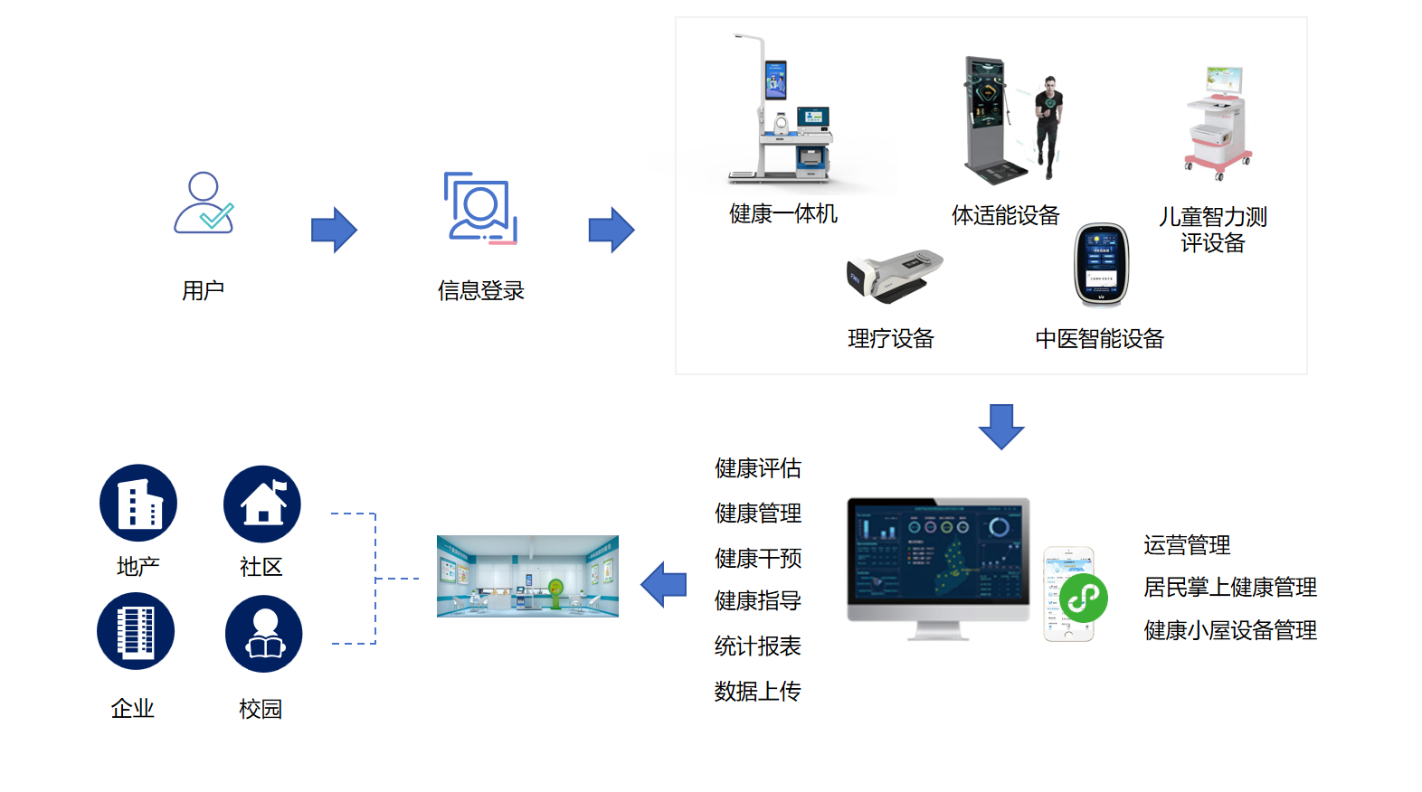 秝林智慧健康小屋 ——是集信息采集、分析、監(jiān)控、聯(lián)動(dòng)、預(yù)警及健康管理等功能為一體的智能物聯(lián)系統(tǒng)。以 “智慧城市 全程健康”為服務(wù)理念,通過物聯(lián)網(wǎng)技術(shù)融合多款智能化設(shè)備,對(duì)接健康管理平臺(tái)和健康大數(shù)據(jù)平臺(tái),構(gòu)建了專業(yè)、安全、高效的健康管理體系,幫助居民做好健康預(yù)防和干預(yù)工作,推動(dòng)社區(qū)健康服務(wù)體系建設(shè)。用戶通過健康小屋可自主進(jìn)行健康體檢、評(píng)估、檔案建立、健康教育、危險(xiǎn)因素發(fā)現(xiàn)和改善等基礎(chǔ)管理。同時(shí),可作為機(jī)構(gòu)為用戶提供精細(xì)化健康服務(wù)的專業(yè)工具,篩選重點(diǎn)用戶,制定精細(xì)化的管理方案,提供管理效能。
